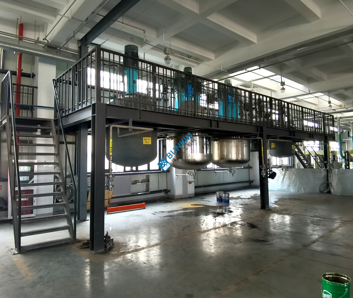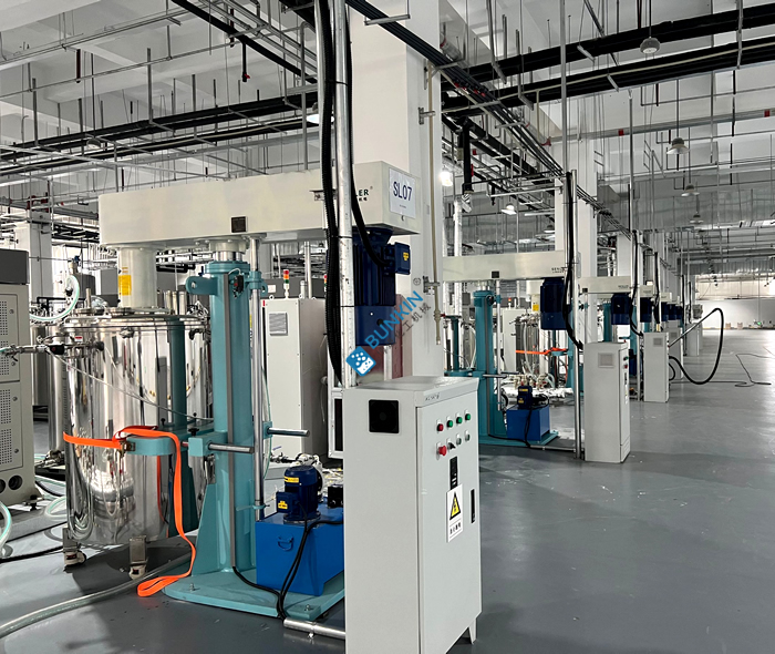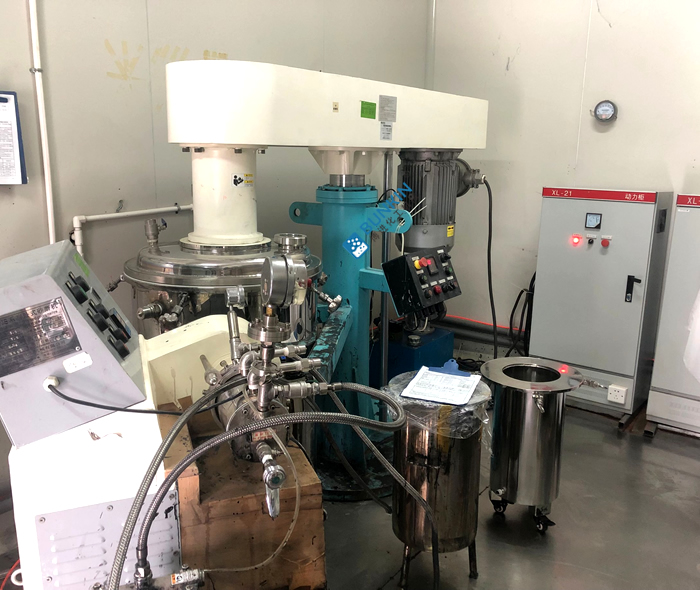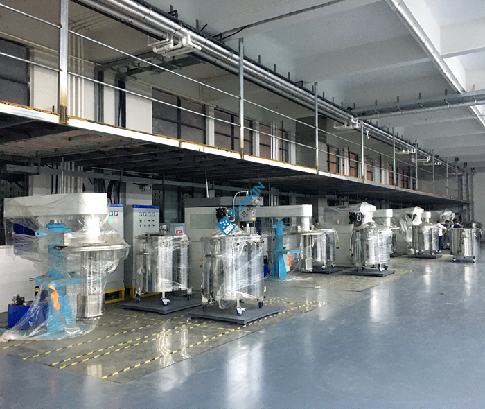 浙江XX電子材料有限公司購(gòu)買(mǎi)液壓升降籃式研磨機(jī)、電動(dòng)升降分散攪拌機(jī)等使用現(xiàn)場(chǎng)。