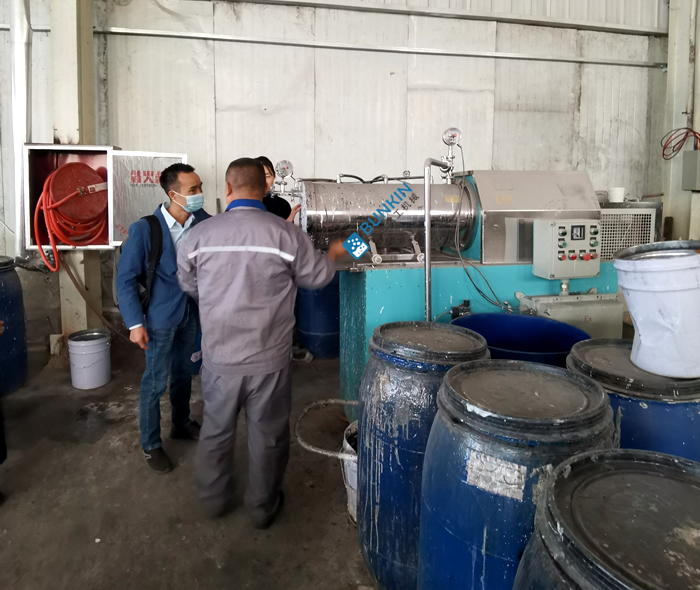 山東XXXX科技股份有限公司購(gòu)買(mǎi)臥式砂磨機(jī)使用現(xiàn)場(chǎng)