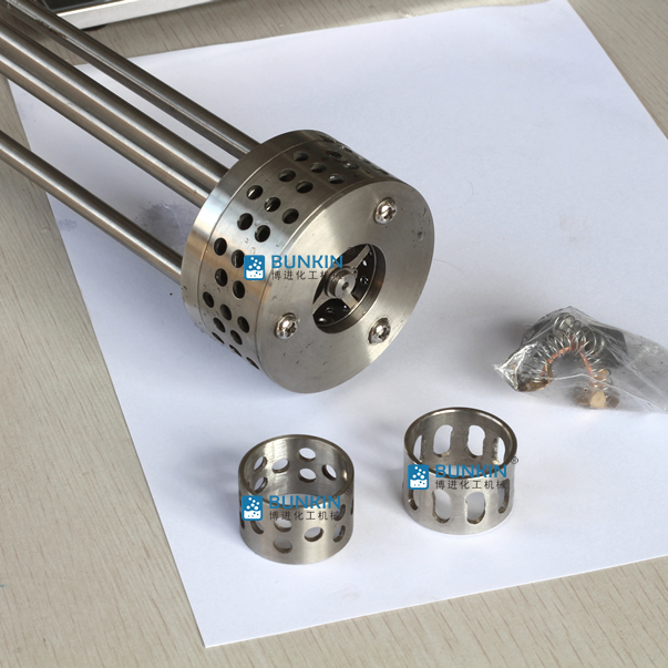 實驗室小型乳化機強勁的馬達進行高速旋轉(zhuǎn)使轉(zhuǎn)、定子之間形成真空,物料從轉(zhuǎn)、定子上部和底部吸入。強大動能使轉(zhuǎn)子產(chǎn)生極高的線速度,使物料在轉(zhuǎn)、定子間隙之間經(jīng)過強烈的撞擊、破碎、離心擠、液層摩擦、強力剪切之后飛射出去,在多種不同方向力的作用下,產(chǎn)生強大紊流。物料在適量乳化劑和成熟工藝下經(jīng)過一定時間反復循環(huán)解聚、分散、均質(zhì)、細化、剪切產(chǎn)生穩(wěn)定乳狀液。
