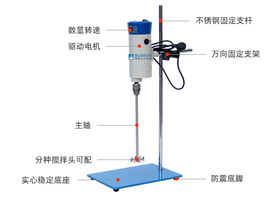 4、小巧設(shè)計 靜音操作,結(jié)構(gòu)合理,攪拌棒清洗裝拆方便,根據(jù)工藝需要,更換不同的攪拌形式。