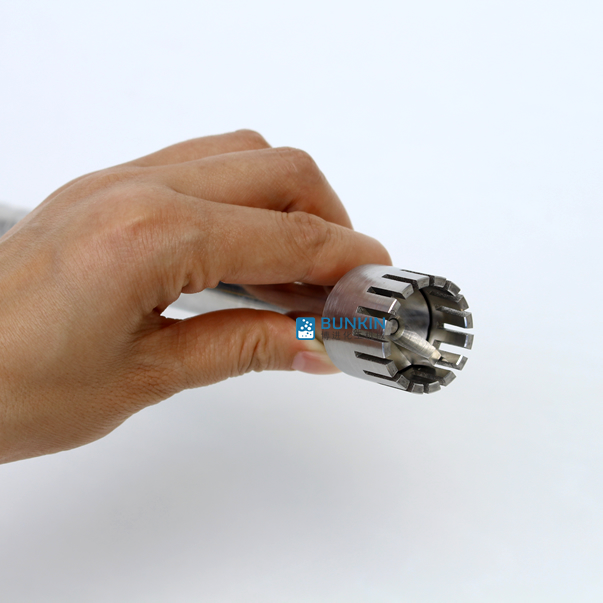 設(shè)備帶有鎖緊及升降手柄,能夠快速升降和固定;均質(zhì)頭快拆式設(shè)計,更換方便,清洗容易。