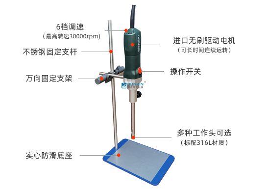 實驗室高速乳化機集靈巧、方便于一身??墒殖植僮?。選用德國原裝無刷大功率馬達,無刷電機,運行更穩(wěn)定,噪聲更小,可處理更大范圍粘度物料。轉(zhuǎn)速可達28000rpm,可長時間連續(xù)運轉(zhuǎn),多種工作頭可供選擇,輕松滿足多種高要求分散、乳化、均質(zhì)的實驗要求 。