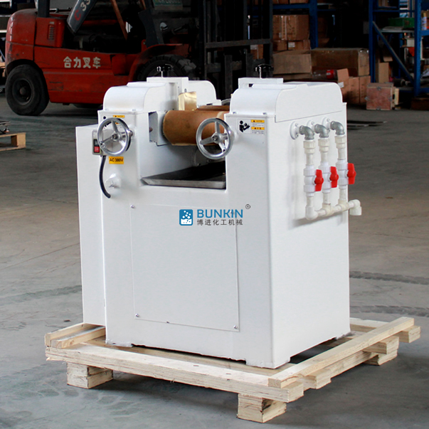 三輥研磨機(jī)適用于需要分散而細(xì)度要求較高的膏體或高粘度物料使用;通過水平的三根輥筒的表面相互擠壓,手搖式調(diào)節(jié)輥筒之間的間距,以不同速度的摩擦達(dá)到研磨效果。裝有緊急制動(dòng)按鈕,防止落入異物導(dǎo)致的設(shè)備損壞。輥?zhàn)邮褂锰厥庥操|(zhì)合金澆鑄而成,也可以使用純氧化鋯材質(zhì)。
