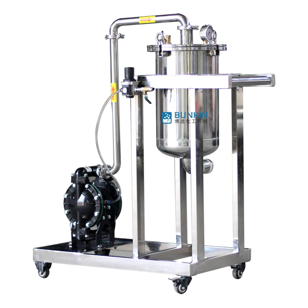 過濾小車可方便移動,氣動隔膜泵能夠調(diào)節(jié)流量,具備一定的吸程和揚程,同時具有自保功能,即使在過濾堵塞的情況下,也不會致泵損壞。