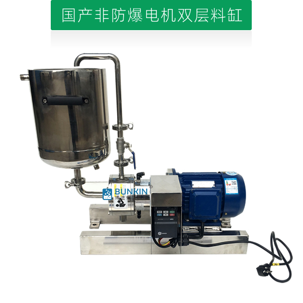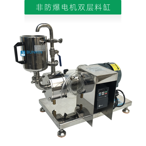 實驗室乳化泵電機帶動轉子高速運轉,通過液力和離心力作用的方法使液-液、固-液物料顆粒粒徑變窄,使一種相均勻分布到另一種或多種相中,達到細化均質、分散乳化效果,從而形成穩(wěn)定的乳狀液的狀態(tài)。設備前級可配置送料泵,對中高粘度物料有一定的適用性。設備噪音低,運轉平穩(wěn),無死角,物料強制通過分散、剪切的作用;具有短距離、低揚程輸送功能,自帶單/雙層料筒循環(huán),方便易清洗。