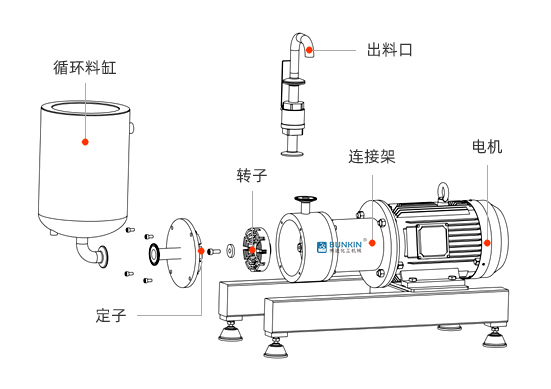 轉定子采用鍛件材料、CNC加工中心加工,轉定子間隙極小,剪切極限細度好,乳化分散效率高,采用雙端面機械密封設計,無泄漏,減少維護成本。