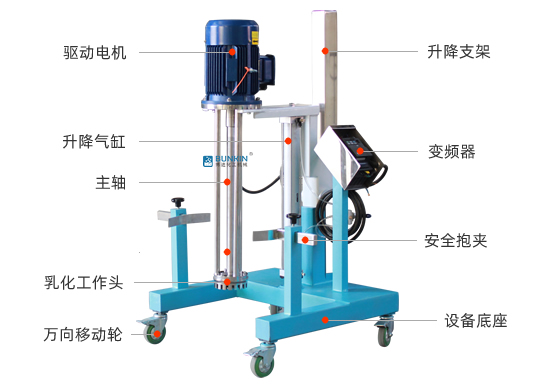 2、乳化機(jī)固定在氣動升降支架上,移動方便,操作簡單。
