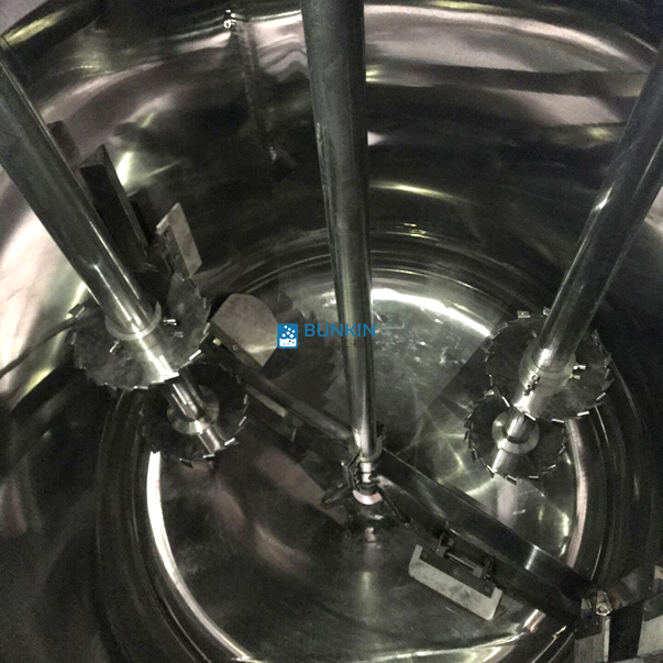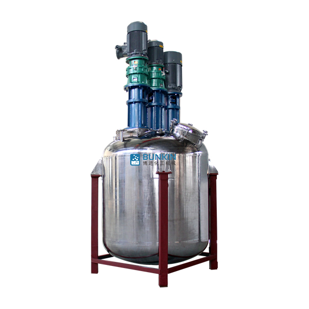 三軸多功能反應(yīng)釜由帶刮壁式攪拌器和高速分散器(乳化頭或研磨頭)組成,三組攪拌器同時作業(yè)使物料受到強(qiáng)烈的分散、混合作用,達(dá)到快速混合的目的;攪拌器一般分為錨式和蝶式兩種,針對不同粘度、比重的物料和不同的生產(chǎn)工藝要求可以設(shè)計較好攪拌形式。