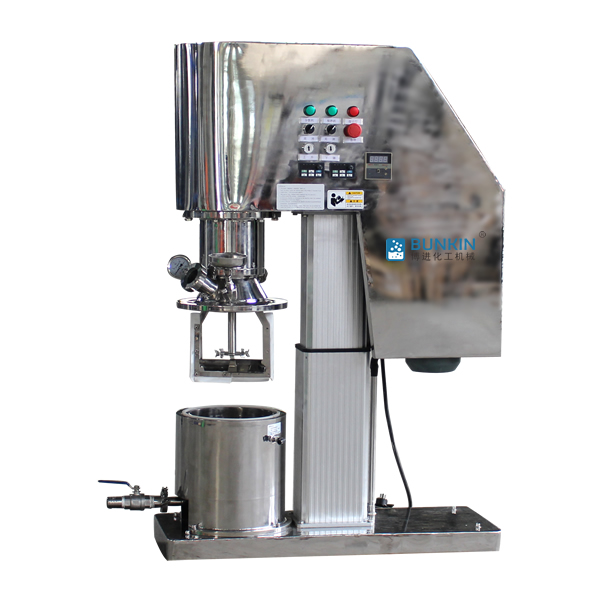同心雙軸液壓分散機攪拌漿葉在動力機組的驅(qū)動下,沿固定方向旋轉(zhuǎn);在旋轉(zhuǎn)過程中,驅(qū)使物料做軸向旋轉(zhuǎn)和徑向旋轉(zhuǎn)。攪拌機內(nèi)的物料,同時存在軸向運動和圓周運動,因而同時存在剪切攪拌和擴散攪拌等幾種攪拌形式。在攪拌槳上裝有刮刀,緊貼桶壁刮拭,刮刀隨著攪拌器旋轉(zhuǎn)時把桶壁的物料完全刮掉,使桶壁無滯留料,同時提高混合效果。分散盤通過高速運轉(zhuǎn),使物料呈環(huán)狀流,產(chǎn)生強旋渦,呈螺旋狀下降到渦流底部。粒子間產(chǎn)生強烈的剪切撞擊與磨擦,達到迅速分散、溶解功能。攪拌盤通過圓周運動,產(chǎn)生較好的徑向作用里,加速物料循環(huán),提高分散效率,液壓升降攪拌機通過液壓泵工作驅(qū)動液壓柱塞升降,帶動整個傳動機構(gòu)和工作組升降。