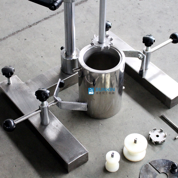 設備帶有鎖緊及升降手柄,能夠快速升降和固定;分散盤采用內六角螺栓與主軸固定,能夠方便快速拆卸更換,清洗容易;帶有夾桶裝置,可以快速將攪拌桶固定,防止桶在工作中發(fā)生位移造成安全事故。